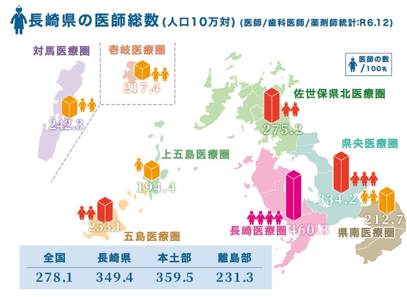 総じて、長崎県の地域医療は一定の改善がみられるものの、持続的な医師確保と定着に向けた取り組みが引き続き重要です。こうした地域医療に関心を持つ皆様の参画を心よりお待ちしています。